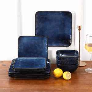 vicrays Ceramic Square 12 Pieces Dinnerware Set – Dinner Plates Salad Plates Cereal Bowls Set Service for 4 – Scratch Resistant Microwave Oven Dishwasher Safe – Blue