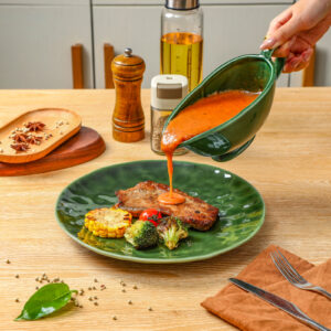 The Gravy Boat with Saucer blends classic elegance with modern function, making it a charming addition that suits any decor or table setting. Its captivating blue hue, sleek porcelain body, and unique design make it ideal for holidays like Christmas and Thanksgiving, while also enhancing everyday dining.