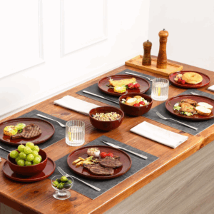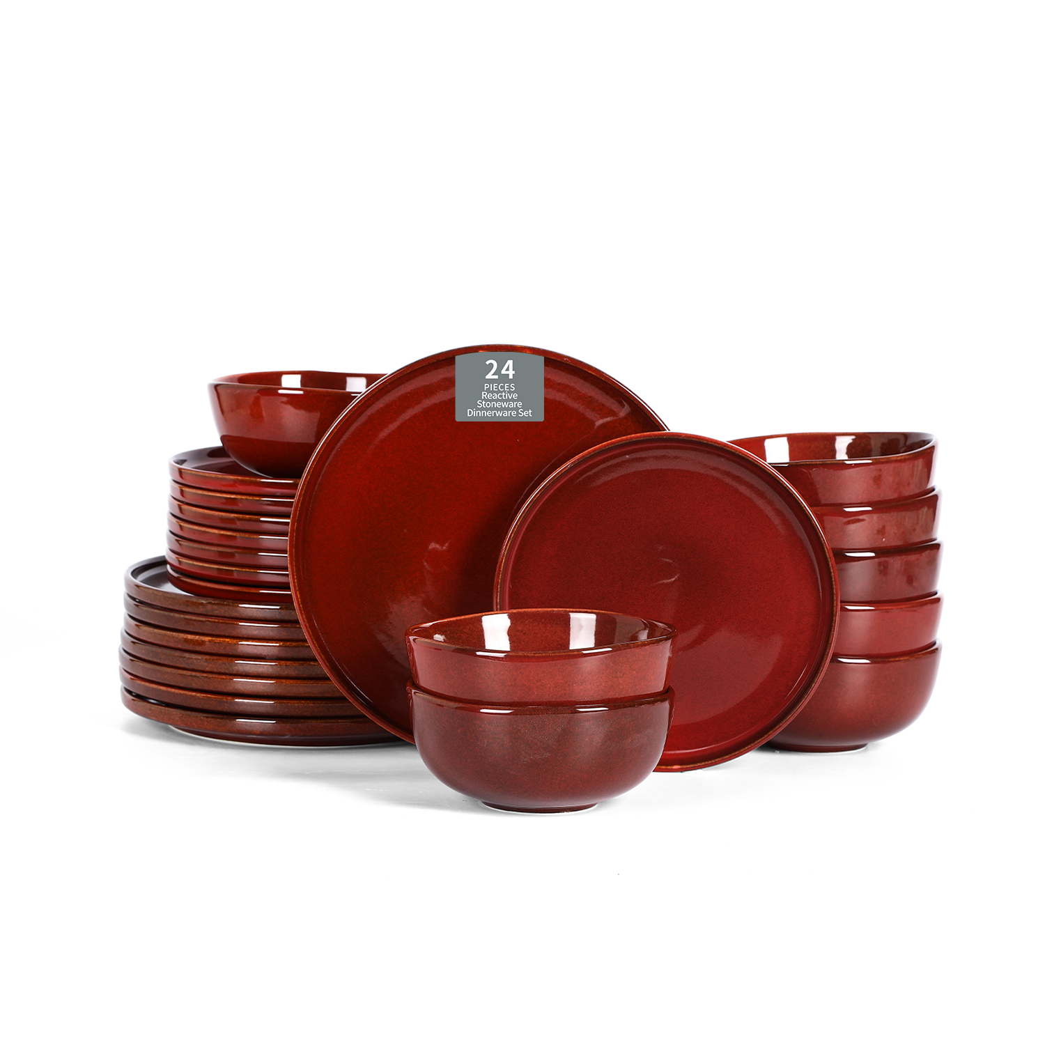 PERFECT SIZE FOR MULTI-PURPOSE: This 24-piece Cherry Red dinnerware set includes 10-inch dinner plates, 8-inch salad plates, 26oz cereal bowls, service for 4 people. Not only suitable for your own family use, but also as a great gift ideal for housewarming, wedding, birthday, family reunion, or any other party.