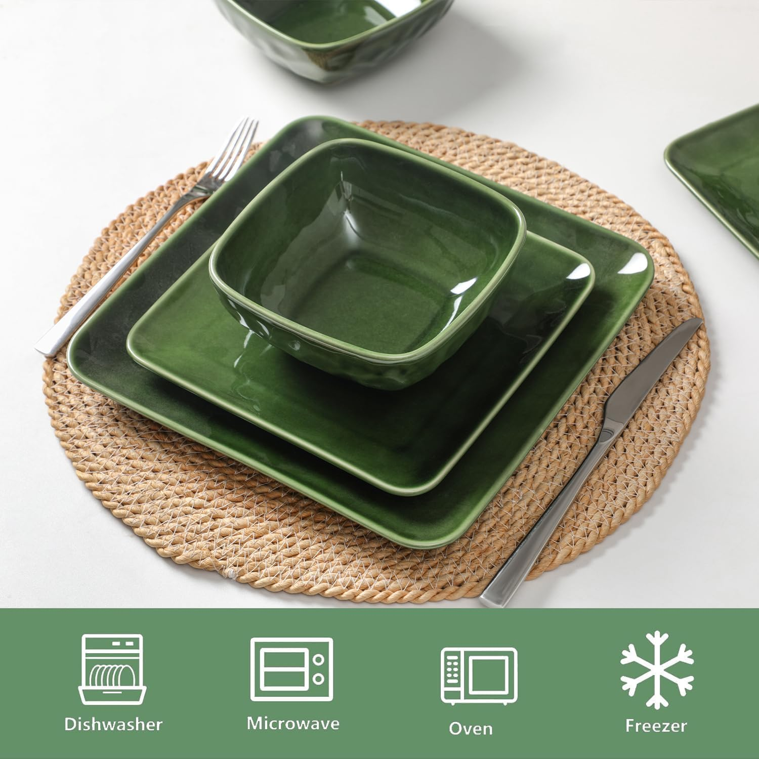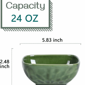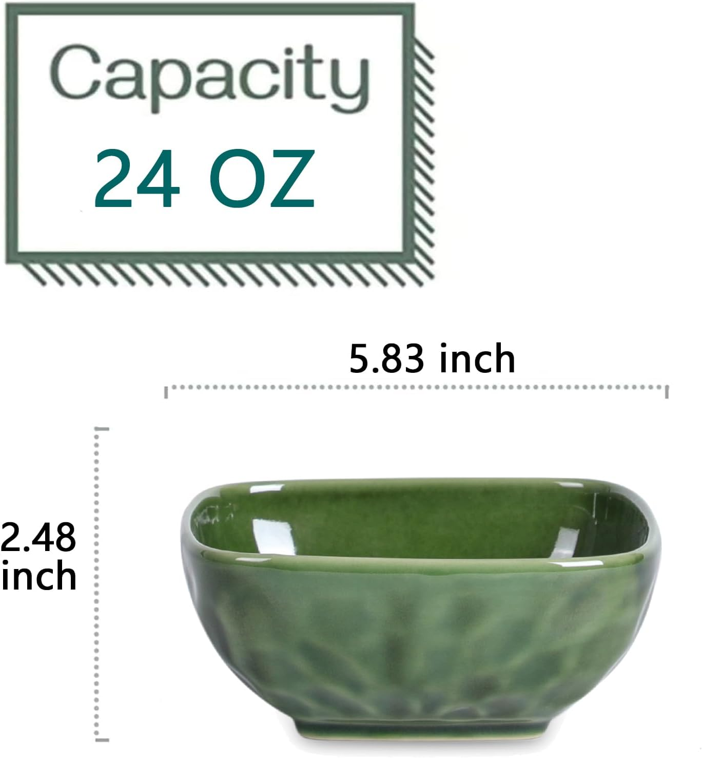 vicrays Ceramic Square Bowls Set – 24 Ounce Soup Dessert Snack Bowls, Stoneware Fluted Bowls Set for Kitchen, Serving, Chip Resistant, Dishwasher Microwave Safe, Set of 6 (Green)